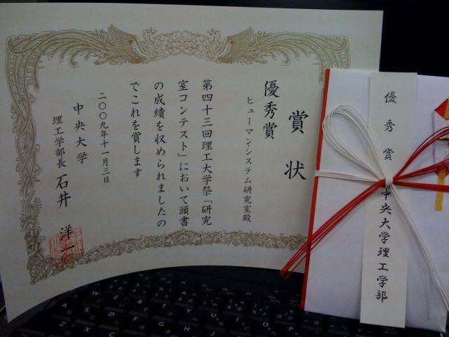 2009年度白門祭 研究室公開コンテスト 優秀賞受賞